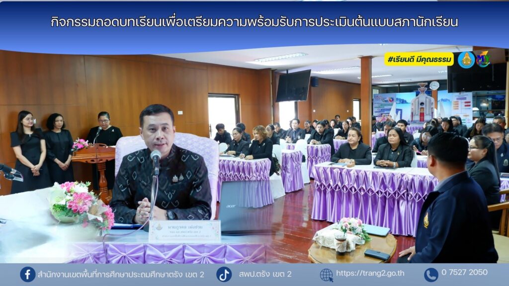 เมื่อวันที่ 27 กุมภาพันธ์ 2569 นางสาวปัญจศีล ภูสงัด ผอ.สพป.ตรัง เขต 2 ได้มอบหมายให้นายภูวดล เม่งช่วย รอง ผอ.สพป.ตรัง เขต 2 เป็นประธานเปิดโครงการขับเคลื่อนและพัฒนาประชาธิปไตยในโรงเรียนผ่านสภานักเรียน ในกิจกรรมถอดบทเรียนเพื่อเตรียมความพร้อมรับการประเมินต้นแบบสภานักเรียน โดยมีผู้บริหารสถานศึกษา และผู้แทนโรงเรียนที่สมัครเข้าร่วมกิจกรรม จำนวน 46 คน นางวัลภา จันทร์มีศรี ผอ.กลุ่มส่งเสริมการจัดการศึกษา และเจ้าหน้าที่กลุ่มส่งเสริมการจัดการศึกษา วิทยากร ประกอบด้วยนายเพลิง ขุนชิต รอง ผอ.สพม.สงขลา สตูล และนางสาวกัลยา บิลสะอาด ผอ.โรงเรียนบ้านห้วยต่อ เข้าร่วม ณ ห้องประชุมอันดามัน 3 สพป.ตรัง เขต 2