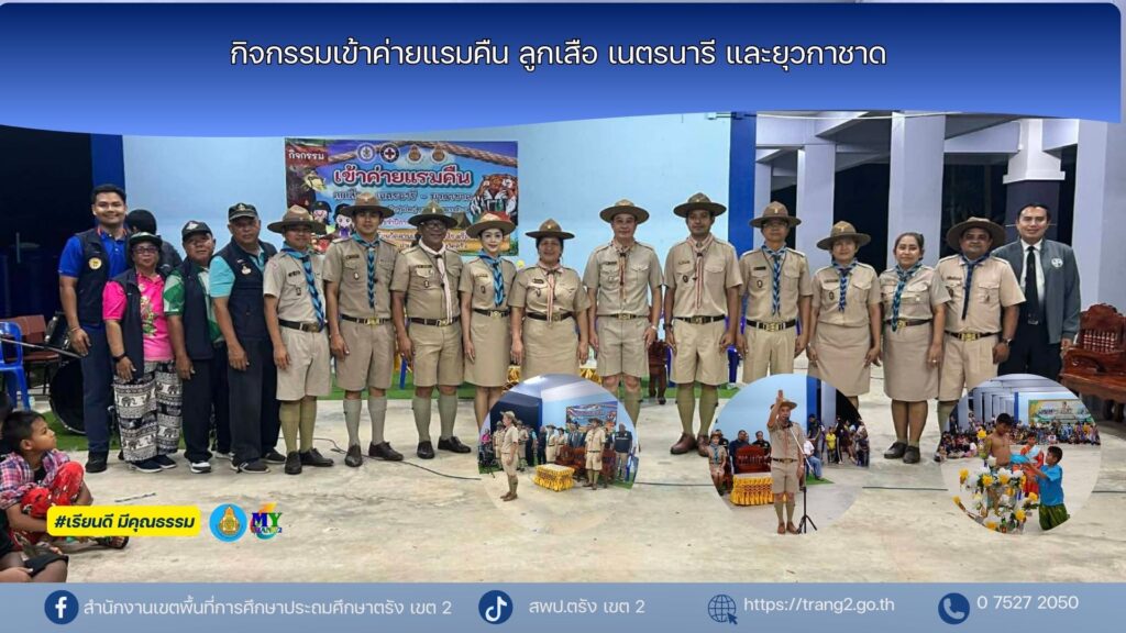 เมื่อวันที่ 26 กุมภาพันธ์ พ.ศ.2569 นางสาวปัญจศีล ภูสงัด ผอ.สพป.ตรัง เขต 2 มอบหมายให้นายภูวดล เม่งช่วย รอง ผอ.สพป.ตรัง เขต 2 เป็นประธานในพิธีรอบกองไฟ กิจกรรมเข้าค่ายแรมคืน ลูกเสือ เนตรนารี และยุวกาชาด ประกอบด้วยลูกเสือสามามัญ ลูกเสือสามัญรุ่นใหญ่ และยุวกาชาด ระดับ 2 และ ระดับ 3 ประจำปีการศึกษา 2568 โรงเรียนวัดควนเมาและโรงเรียนบ้านลำช้าง ณ ค่ายลูกเสือชั่วคราวโรงเรียนวัดควนเมา อำเภอรัษฎา จังหวัดตรัง