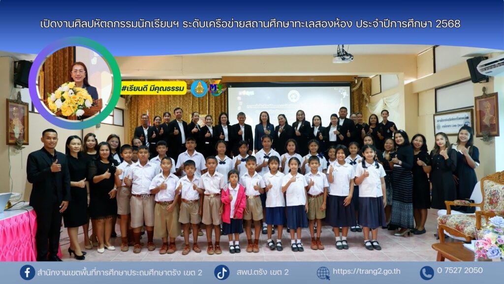 เมื่อวันที่ 19 กุมภาพันธ์ 2569 นางสาวปัญจศีล ภูสงัด ผอ.สพป.ตรัง เขต 2 เป็นประธานในพิธีเปิดงานศิลปหัตถกรรมนักเรียน ครั้งที่ 73 ปีการศึกษา 2568 “งานสานฝันพัฒนาคุณภาพผู้เรียน สพป.ตรัง เขต 2 ครั้งที่ 19 ปีการศึกษา 2568” เครือข่ายสถานศึกษาทะเสองห้อง ณ โรงเรียนห้วยยอด (กลึงวิทยาคาร) อำเภอห้วยยอด จังหวัดตรัง โดยมีผู้บริหารสถานศึกษาเครือข่ายทะเลสองห้อง คณะครู และนักเรียน จำนวน 9โรงเรียน เข้าร่วม