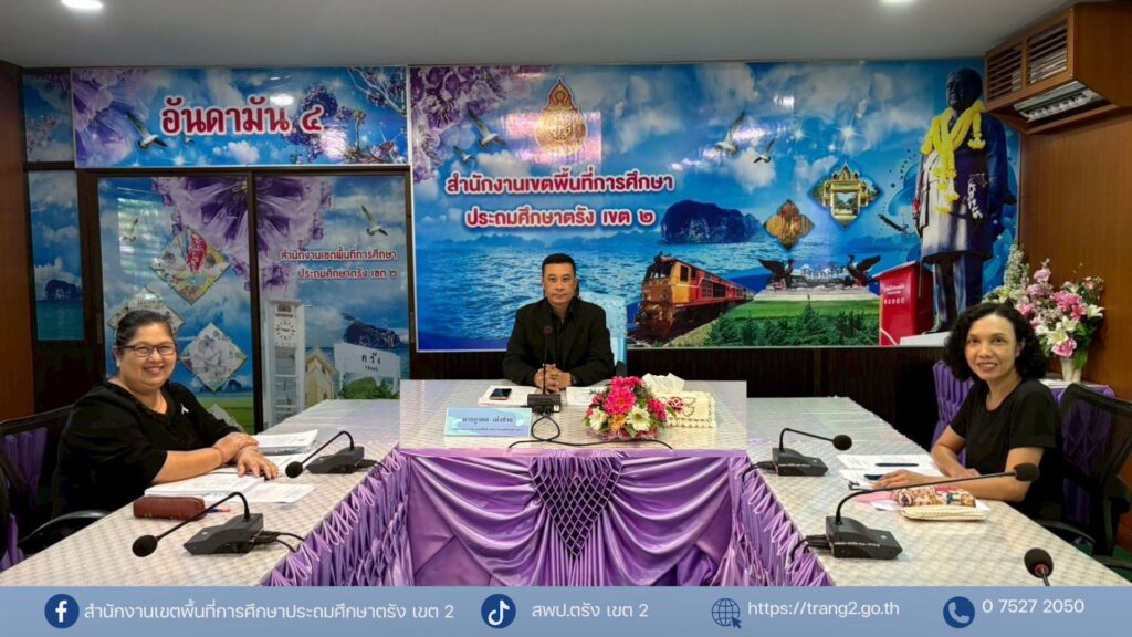 วันที่ 29 มกราคม 2569 นางสาวปัญจศีล ภูสงัด ผอ.สพป.ตรัง เขต 2 มอบหมายให้นายภูวดล เม่งช่วย  รองผอ.สพป.ตรัง เขต 2 เข้าร่วมประชุมคณะกรรมการศึกษาธิการจังหวัดตรัง ครั้งที่ 1/2569 ผ่านระบบออนไลน์ด้วยโปรแกรม Zoom Meeting จากห้องประชุมอันดามัน 4 สพป.ตรัง เขต 2 โดยมีนายทรงกลด สว่างวงศ์ ผู้ว่าราชการจังหวัดตรังเป็นประธานการประชุม พร้อมกันนี้ นางวัลภา จันทร์มีศรี ผู้อำนวยการกลุ่มส่งเสริมการจัดการศึกษา และนางสาวปิยะวรรณ มากหอม นักวิชาการศึกษาชำนาญการ เข้าร่วมประชุมดังกล่าวด้วย เพื่อพิจารณาแผนการรับนักเรียนระดับชั้นอนุบาล 1 (3 ปีบริบูรณ์) ปีการศึกษา 2569 ของโรงเรียนในสังกัดสพป.ตรัง เขต 2