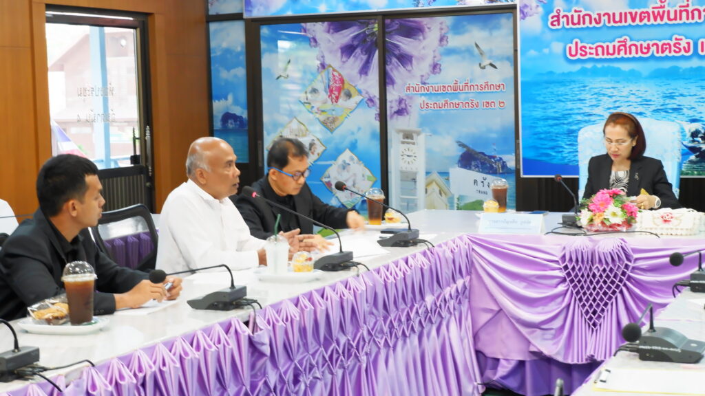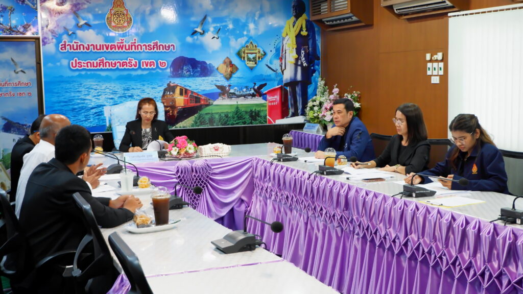 วันที่ 20 มกราคม 2569 นางสาวปัญจศีล ภูสงัด ผอ.สพป.ตรัง เขต 2 นายภูวดล เม่งช่วย รองผอ.สพป.ตรัง เขต 2 นางเรณู ชูสังข์ ผอ.กลุ่มนโยบายและแผน นายชัยยุทธ สมบูรณ์ ผอ.กลุ่มอำนวยการ สพป.ตรัง เขต 2 ให้การต้อนรับและประชุมให้ข้อมูลเชิงประจักษ์กับนายเจด็จ หนูแกล้ว ผอ.กลุ่มนโยบายและแผน สพป.สุราษฎร์ธานี เขต 1 ซึ่งเป็นคณะทำงานตรวจสอบสิ่งก่อสร้างอาคารขนาดใหญ่ ประจำปีงบประมาณ พ.ศ. 2570 (งบผูกพันข้ามปีงบประมาณ พ.ศ. 2570 – 2571) งบลงทุนค่าที่ดินและสิ่งก่อสร้าง สังกัด สพฐ. ณ ห้องประชุมอันดามัน 4 สพป.ตรัง เขต 2