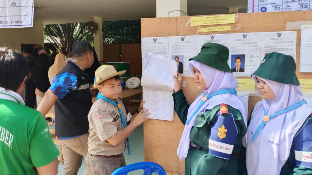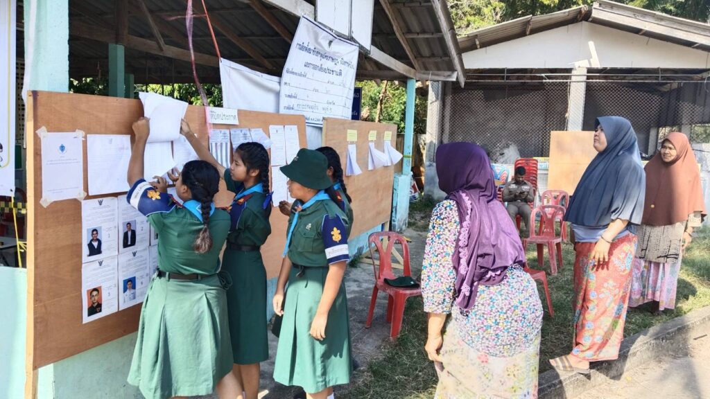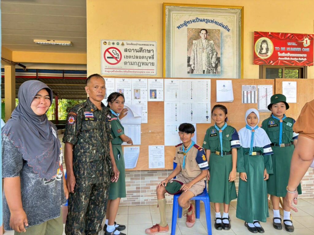 วันที่ 8 กุมภาพันธ์ 2569 โรงเรียนบ้านแหลมมะขาม นำโดยนางฑิฆัมพร  บุญญา ผู้อำนวยการโรงเรียนบ้านแหลมมะขาม นำลูกเสืออาสา กกต. จำนวน 20 คนและผู้กำกับลูกเสืออีก 2 คน ลงปฏิบัติหน้าที่ประจำหน่วยเลือกตั้งในตำบลเขาไม้แก้ว  อำเภอสิเกาจังหวัดตรัง จำนวน 4 หน่วย คือ หน่วยที่ 4 บ้านบางค้างคาว หน่วยที่ 5 บ้านแหลมมะขาม หน่วยที่ 3 บ้านแหลมไทร และหน่วยที่ 7 บ้านทุ่งทอง โดยได้ปฏิบัติหน้าที่ในการอำนวยความสะดวกและช่วยเหลือผู้พิการหรือผู้สูงวัยที่มาใช้สิทธิ์เลือกตั้ง